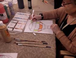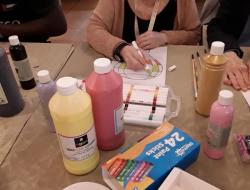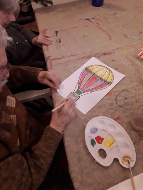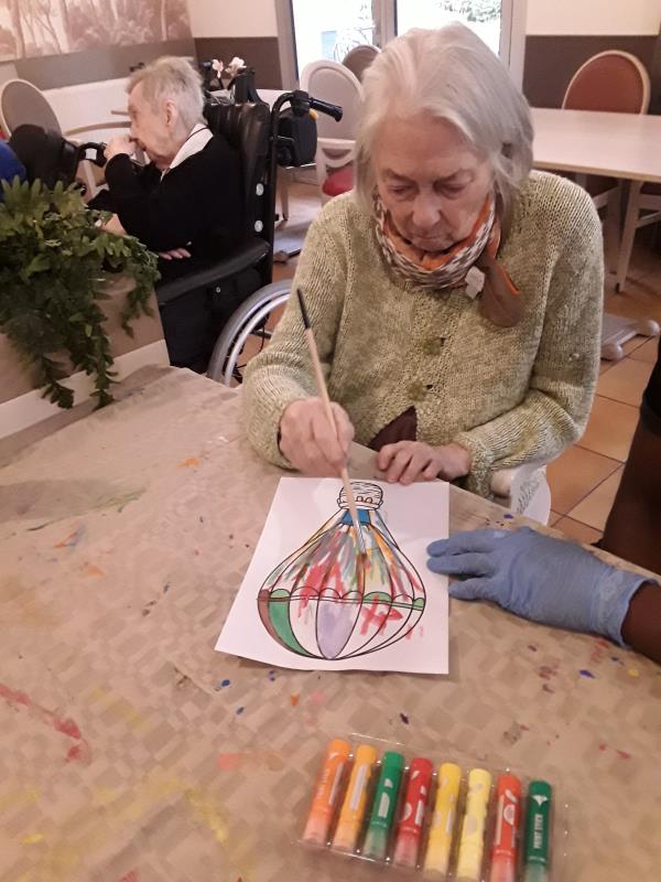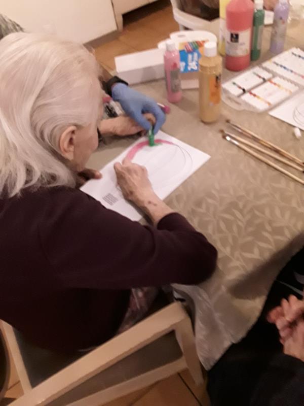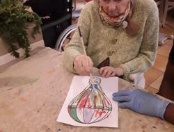 Le lundi après-midi, nous avons mis en place un atelier créatif dans la salle du restaurant avec les résidents.
