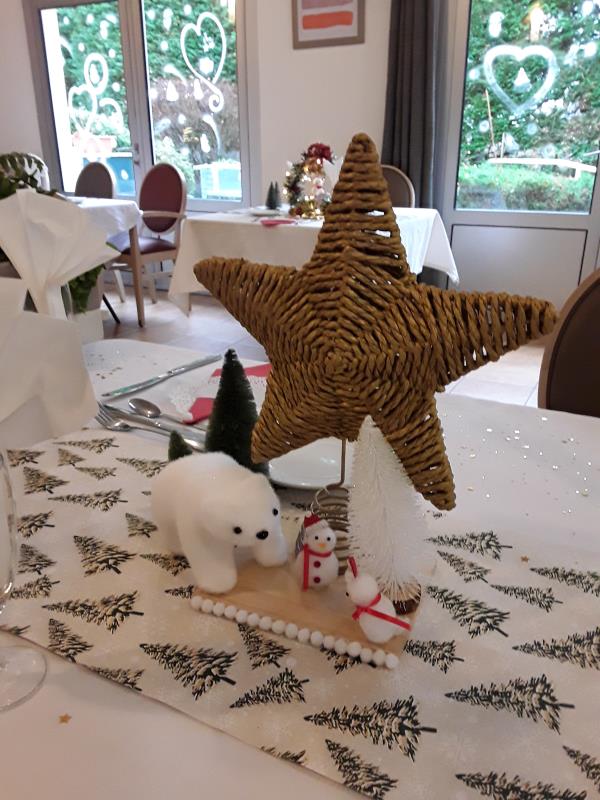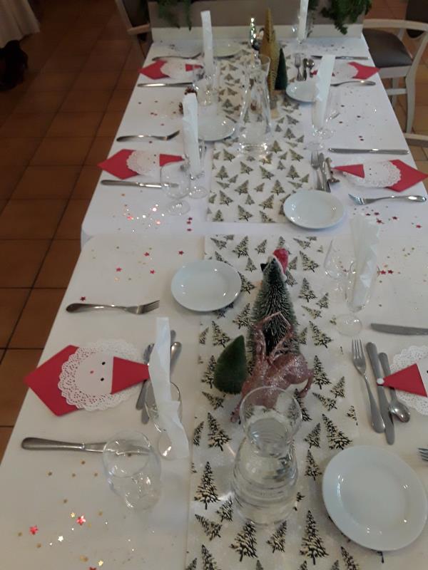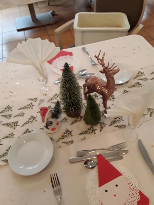 À Isis, nous célébrerons le 24 décembre avec la décoration des tables de Noël par Geneviève, notre aide-soignante référente. Roland, notre chef, est en charge de préparer le repas.