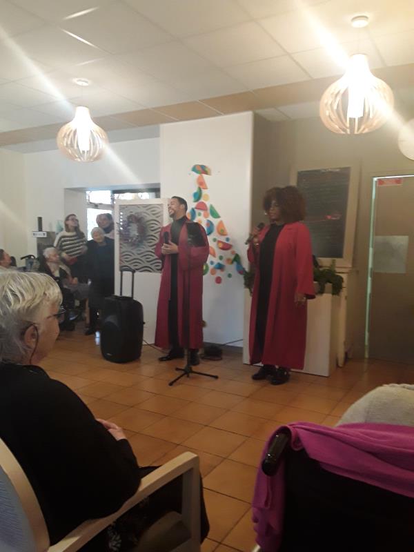 La suite des festivités après le repas a été marquée par un concert de gospel, avec la participation majoritaire des résidents et du personnel.
