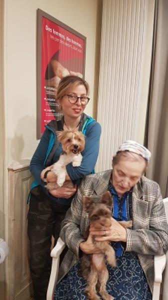 Les habitudes et l'amitié sont déjà installées, les chiens ont l’habitude de venir et les résidents sont très contents de les recevoir. Merci à l’équipe médiatrice et l’association 4 Pattes Tendresse pour tout le bonheur apporté.