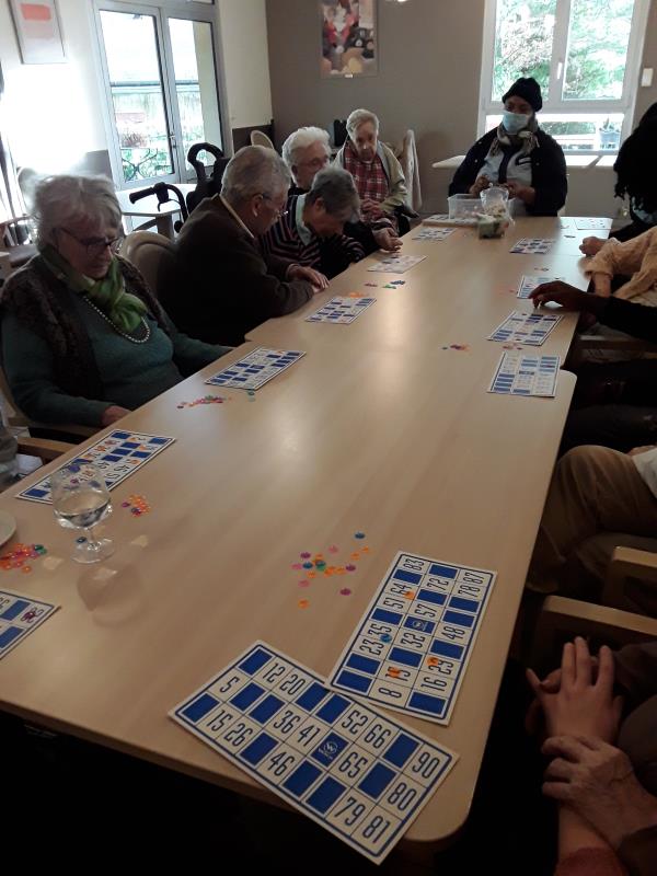 Jeudi après-midi, nous avons organisé une animation loto avec les résidents dans la salle de restaurant en compagnie de notre aide-soignante du rez-de-chaussée. Une animation qui rassemble tous les profils de résidents dans un esprit d'entraide et de partage. Il n'y a pas de perdants ni de gagnants. Ce qui importe avant tout, c'est de se retrouver tous ensemble pour passer un agréable moment.