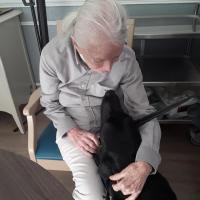 Publiée le 18/09/2025Mercredi, nous avons eu la visite d'un Labrador de 2 ans dans les chambres UNO en compagnie de sa maîtresse Diane et de la présidente de l'association Parole de Chien pour vivre une expérience de complicité entre l'homme et l'animal. La visite a eu lieu au premier étage pour les résidents les plus touch&eacut [...] Lire la suite