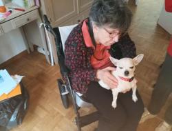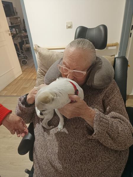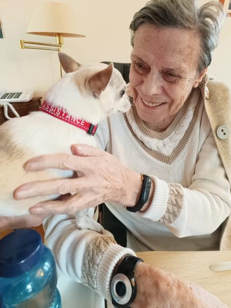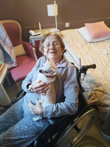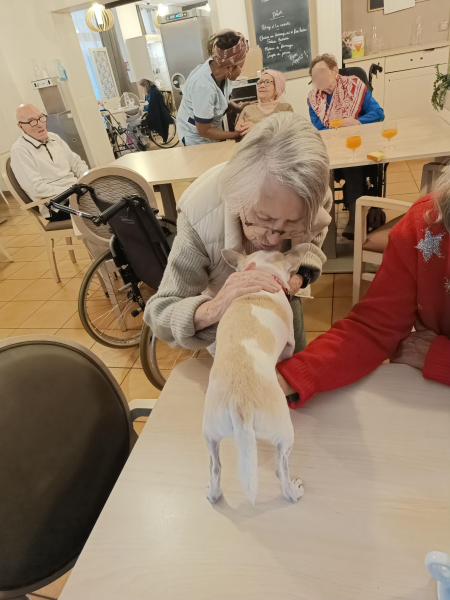 Nous sommes ravis d'accueillir régulièrement Rusty et Catherine, qui parcourent les étages avec beaucoup de tendresse, et qui sont récompensés par des sourires de nos résidents.